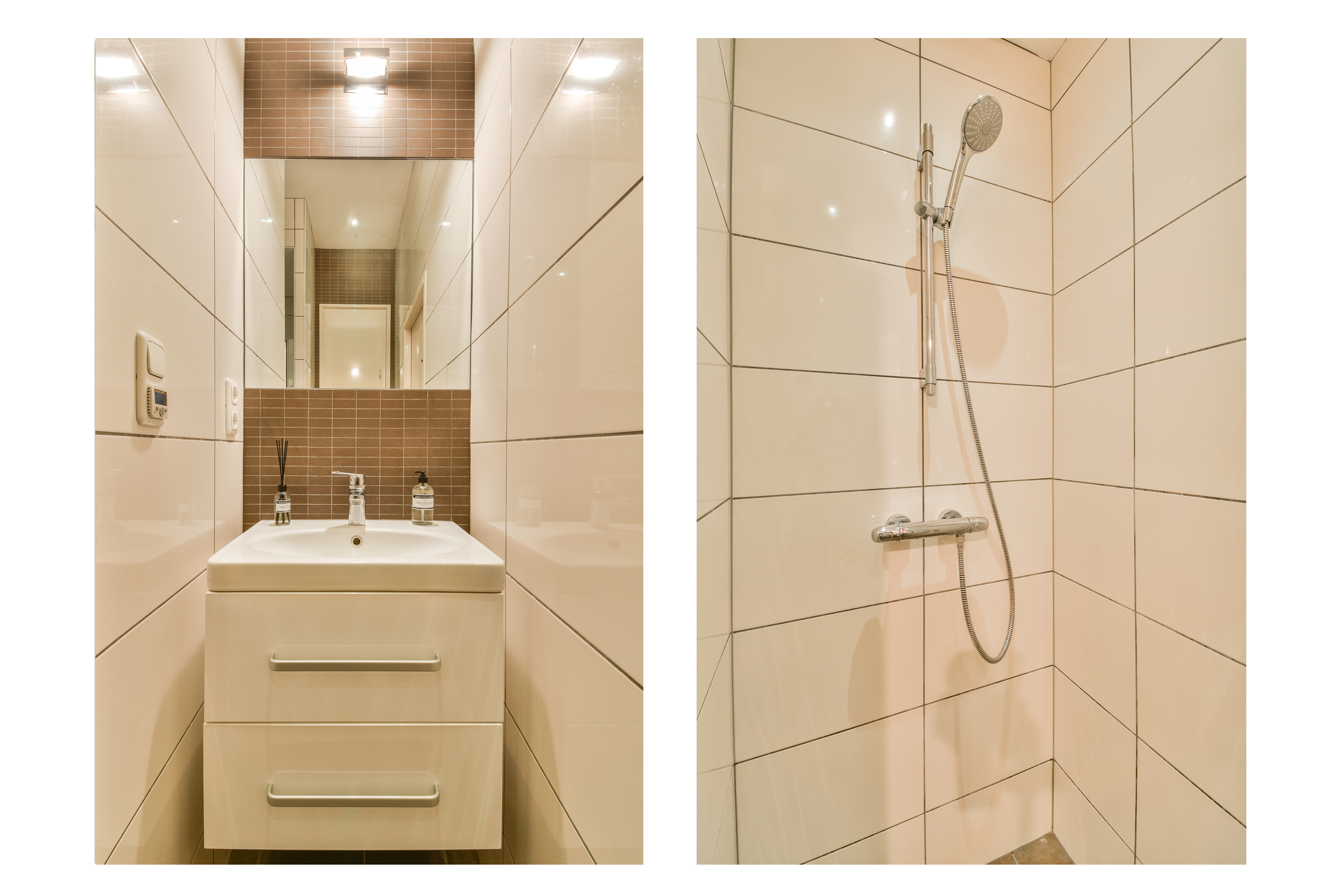 - Nette badkamer en suite, voorzien van een inloopdouche, wastafelmeubel, toilet en aansluiting voor witgoed;