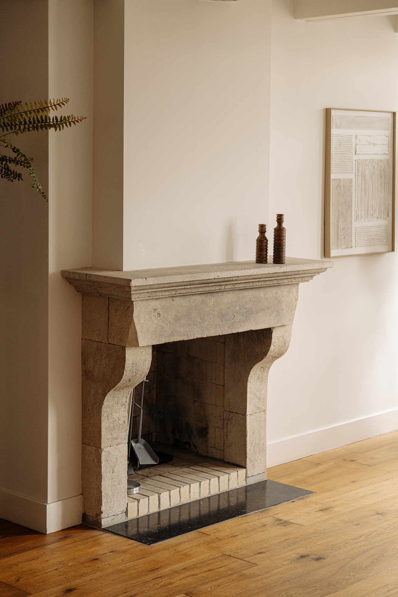 - This floor comprises a spacious, open-plan living room with large windows, a characteristic beamed ceiling, and an attractive, original fireplace;