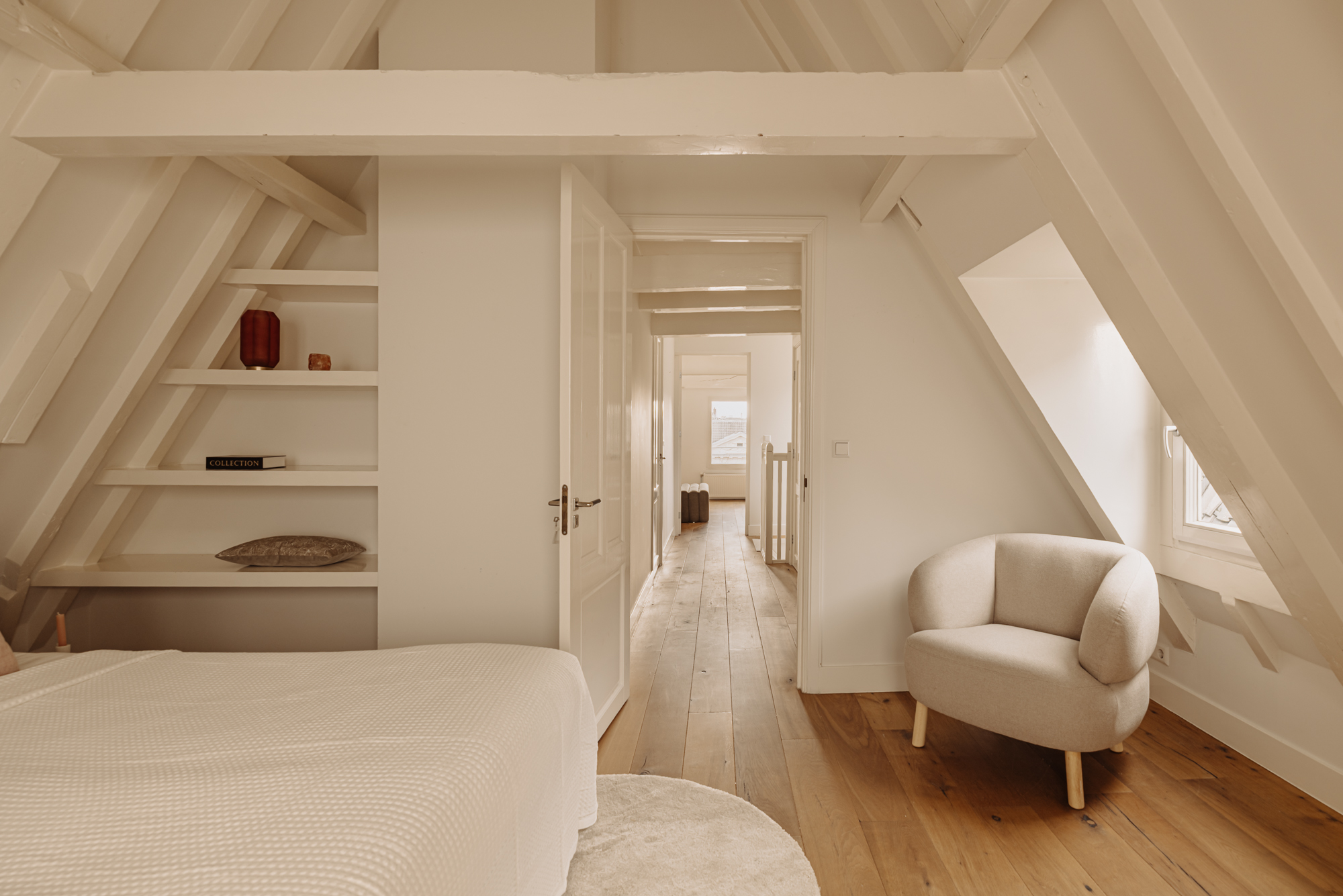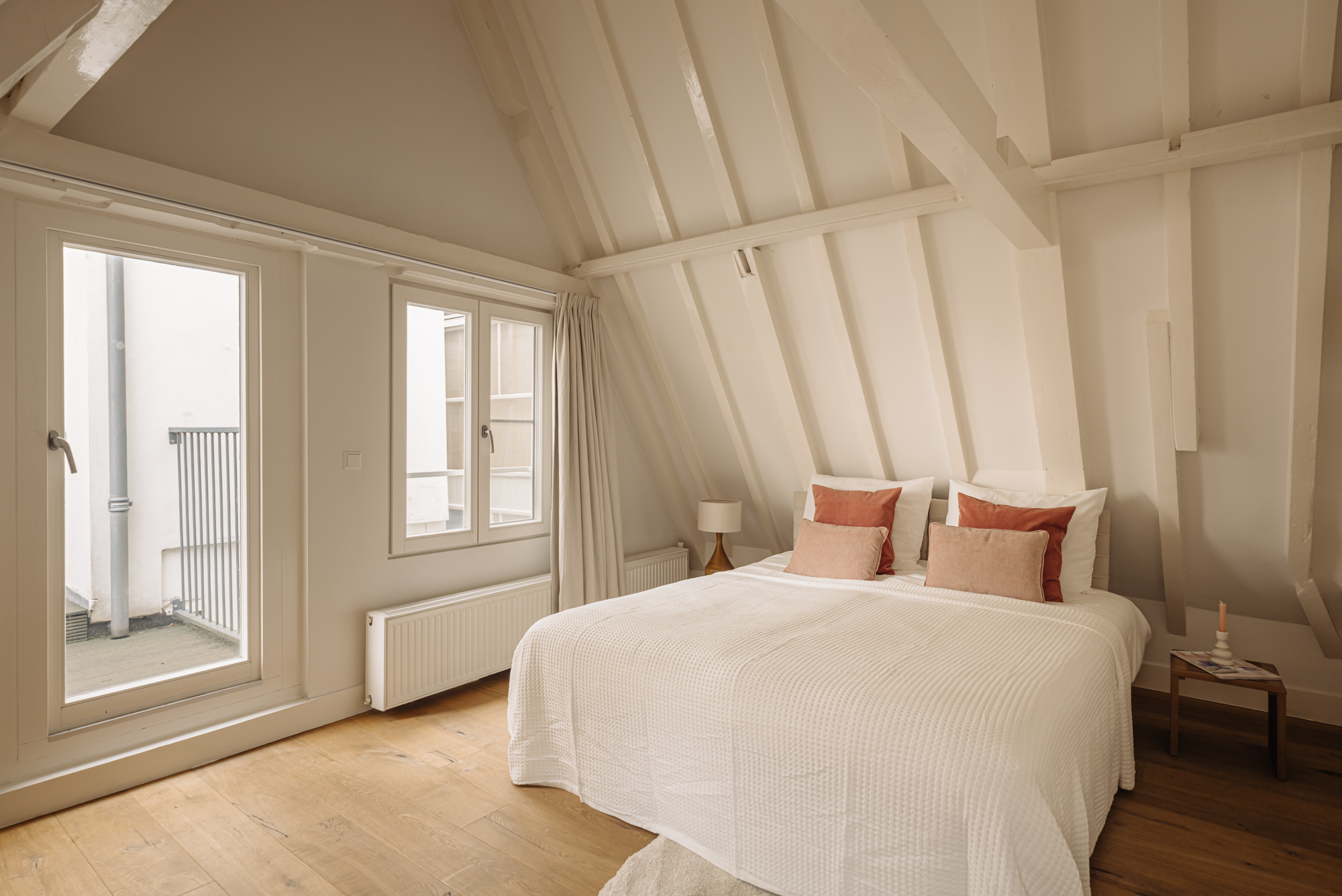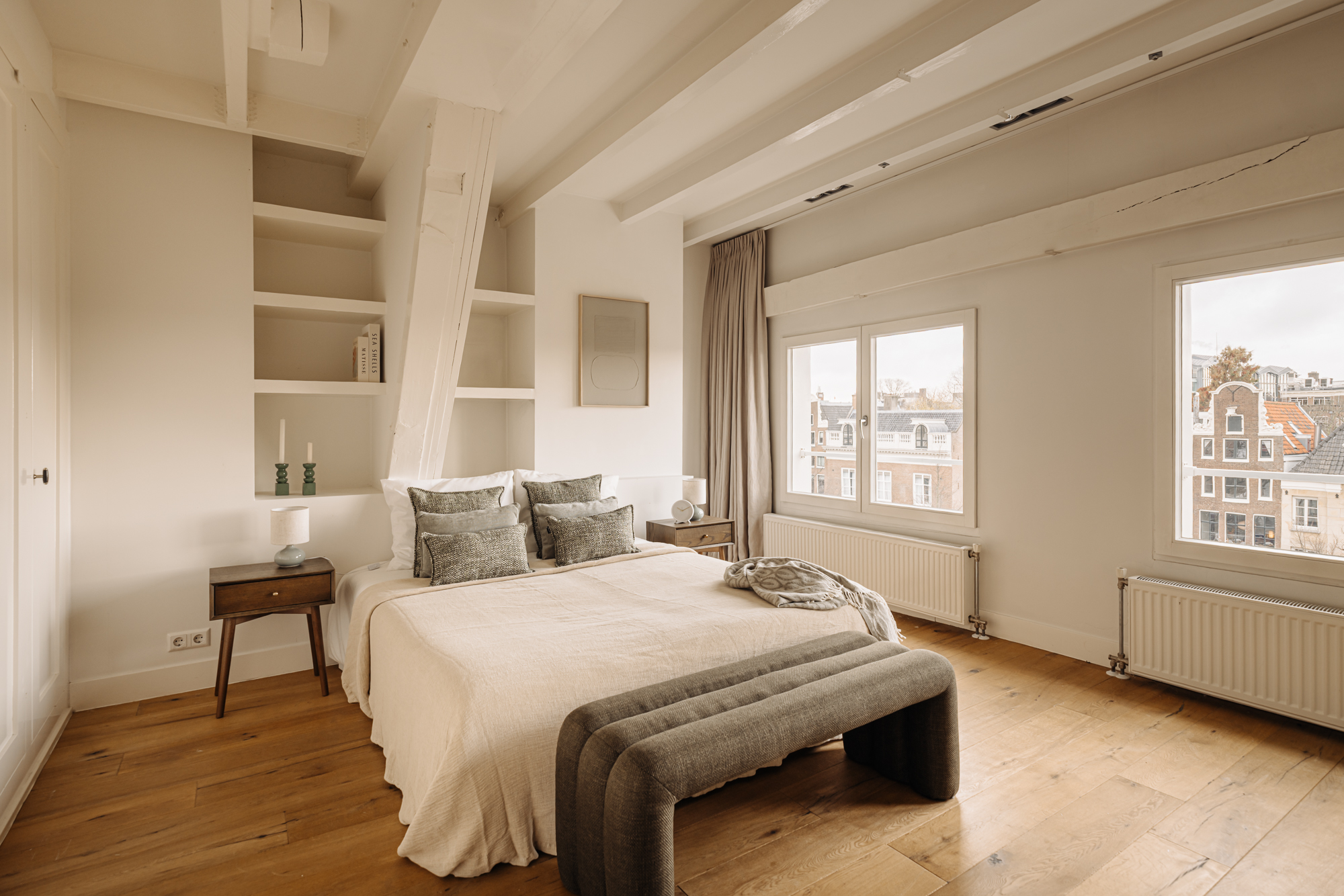 - De master bedroom aan de voorzijde is voorzien van een ingebouwde kastenwand en biedt een prachtig uitzicht over de sfeervolle Keizersgracht en de Amstel;