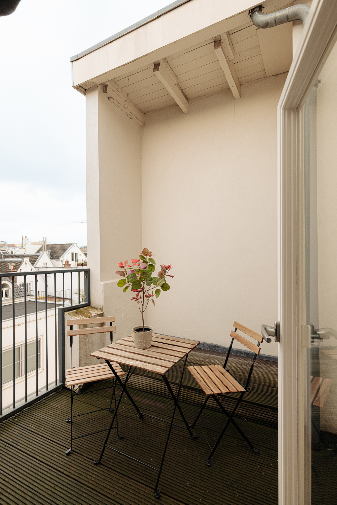 - De slaapkamer aan de achterzijde beschikt over een openslaande deur naar een ruim balkon op het zuidoosten;