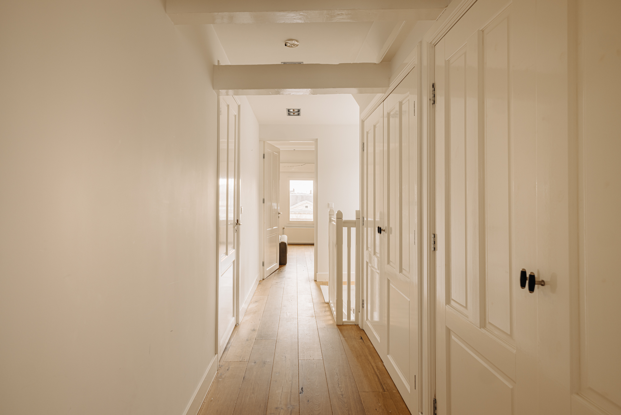 De woning is hoogwaardig afgewerkt en beschikt over veel lichtinval. De gehele woning heeft een prachtige, eikenhouten vloer en een karakteristiek balkenplafond. Met een royale leefruimte, luxe keuken, twee riante slaapkamers en een zonnig balkon biedt deze woning alles wat u mag verwachten van hoogwaardig wonen in de binnenstad.
