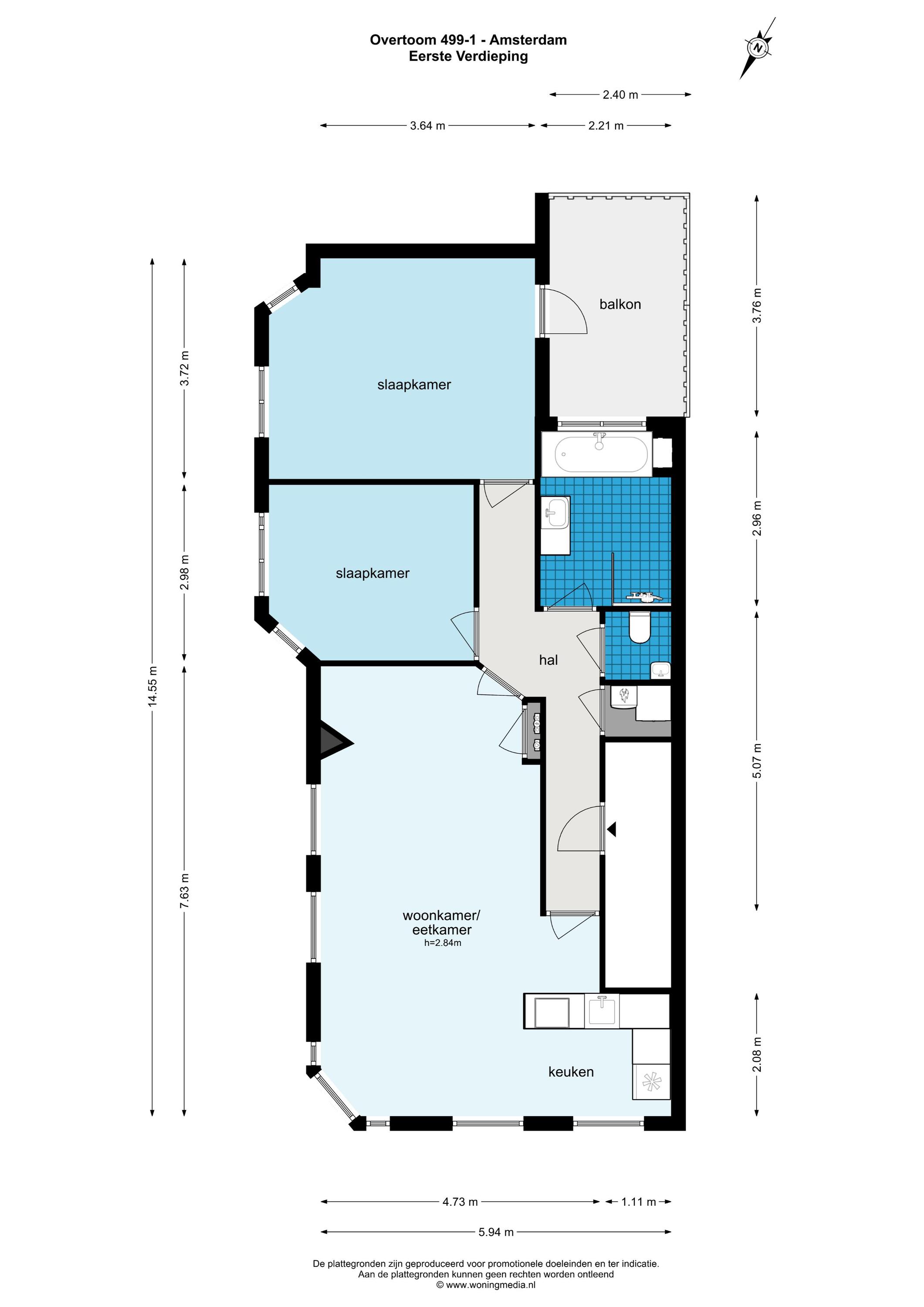 NB. De opgegeven oppervlakte is door een gespecialiseerd bedrijf gemeten conform NEN2580.
