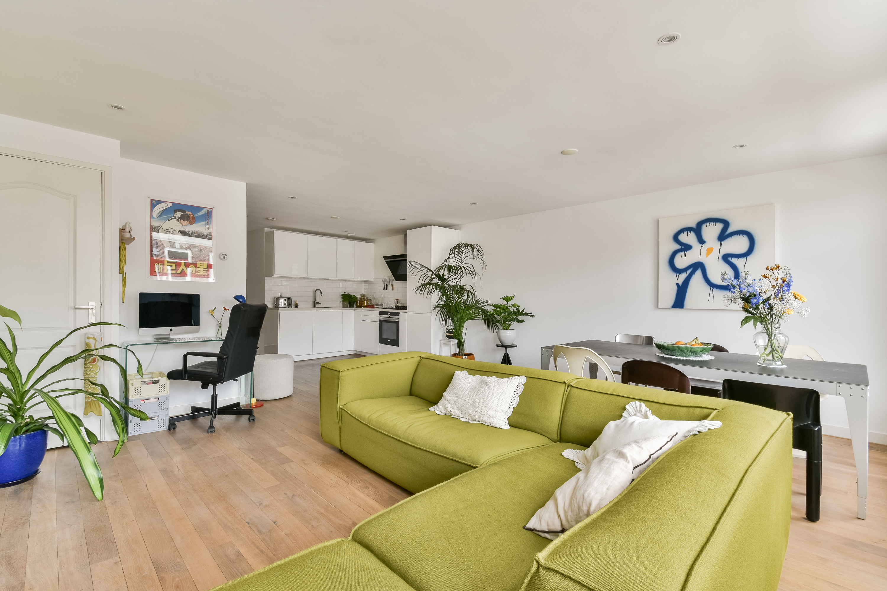 The spacious living room with a modern open kitchen has large windows at the front, providing an abundance of natural light. The entire apartment is fitted with HR++ double glazing and a beautiful solid oak (insulated) wooden floor. And importantly: the apartment is located on FREEHOLD LAND (no ground lease).