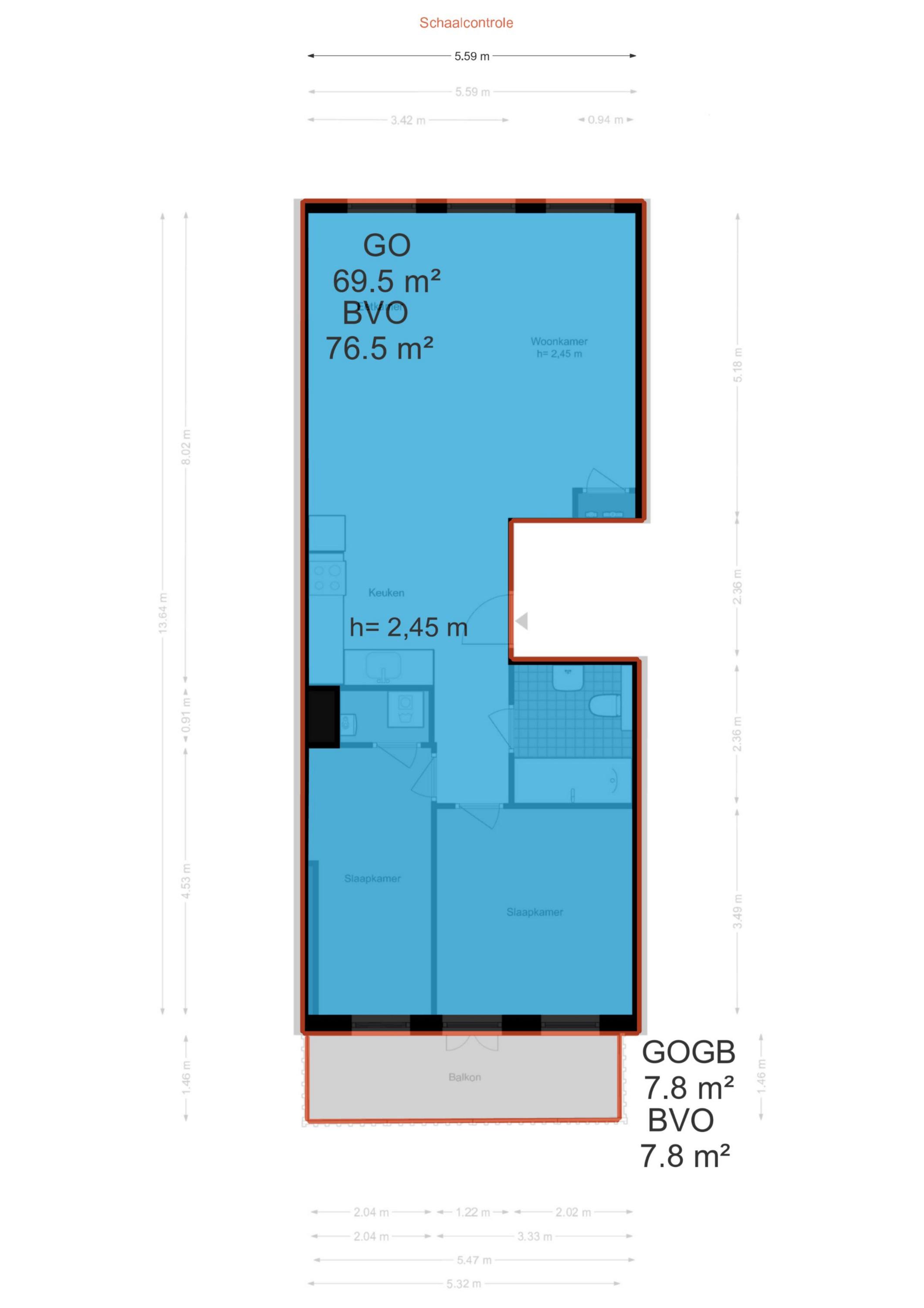 NB. De opgegeven oppervlakte is door een gespecialiseerd bedrijf gemeten conform NEN2580.