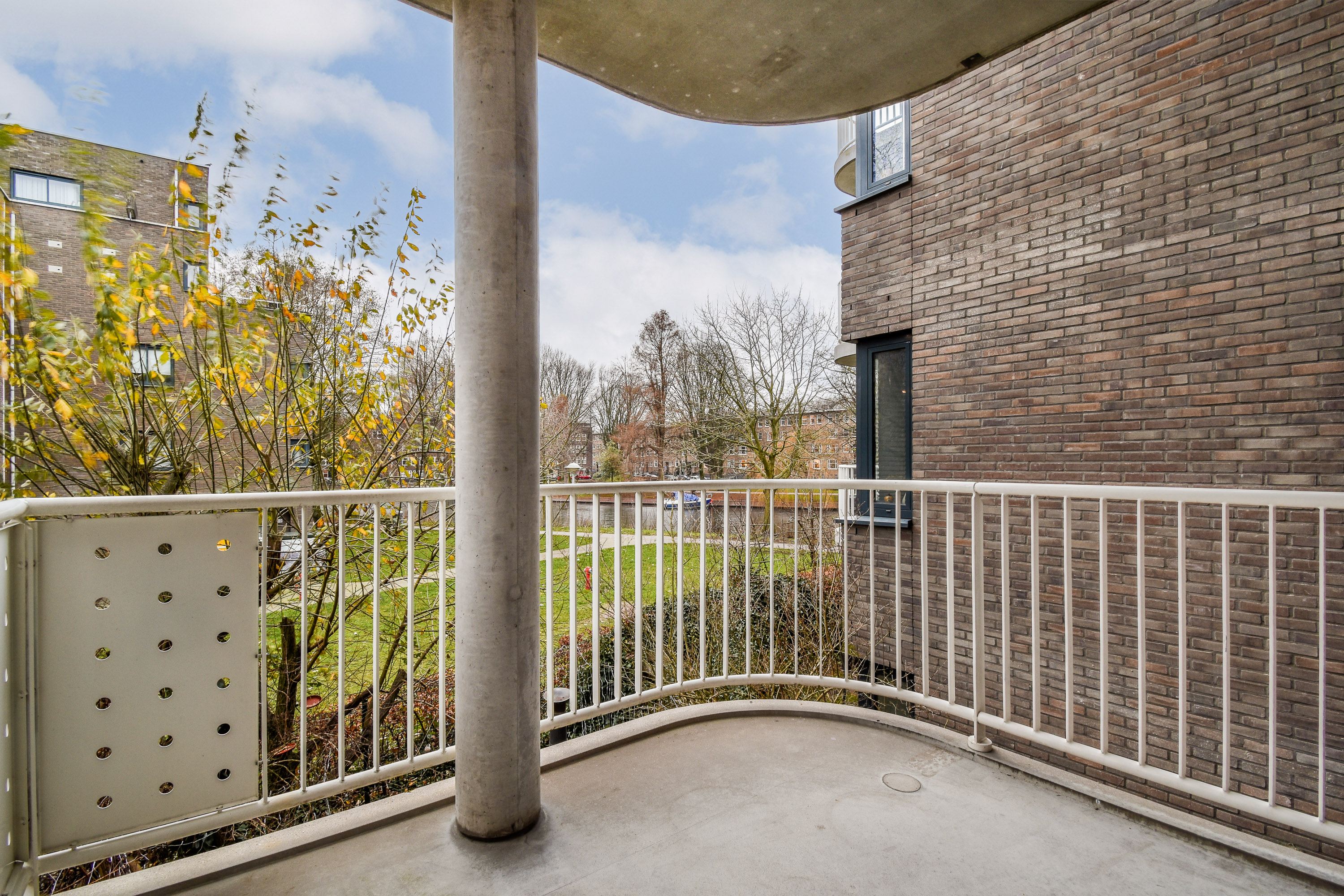 - Vanaf het balkon is er fraai uitzicht over een plantsoen en het Westelijk Marktkanaal;
