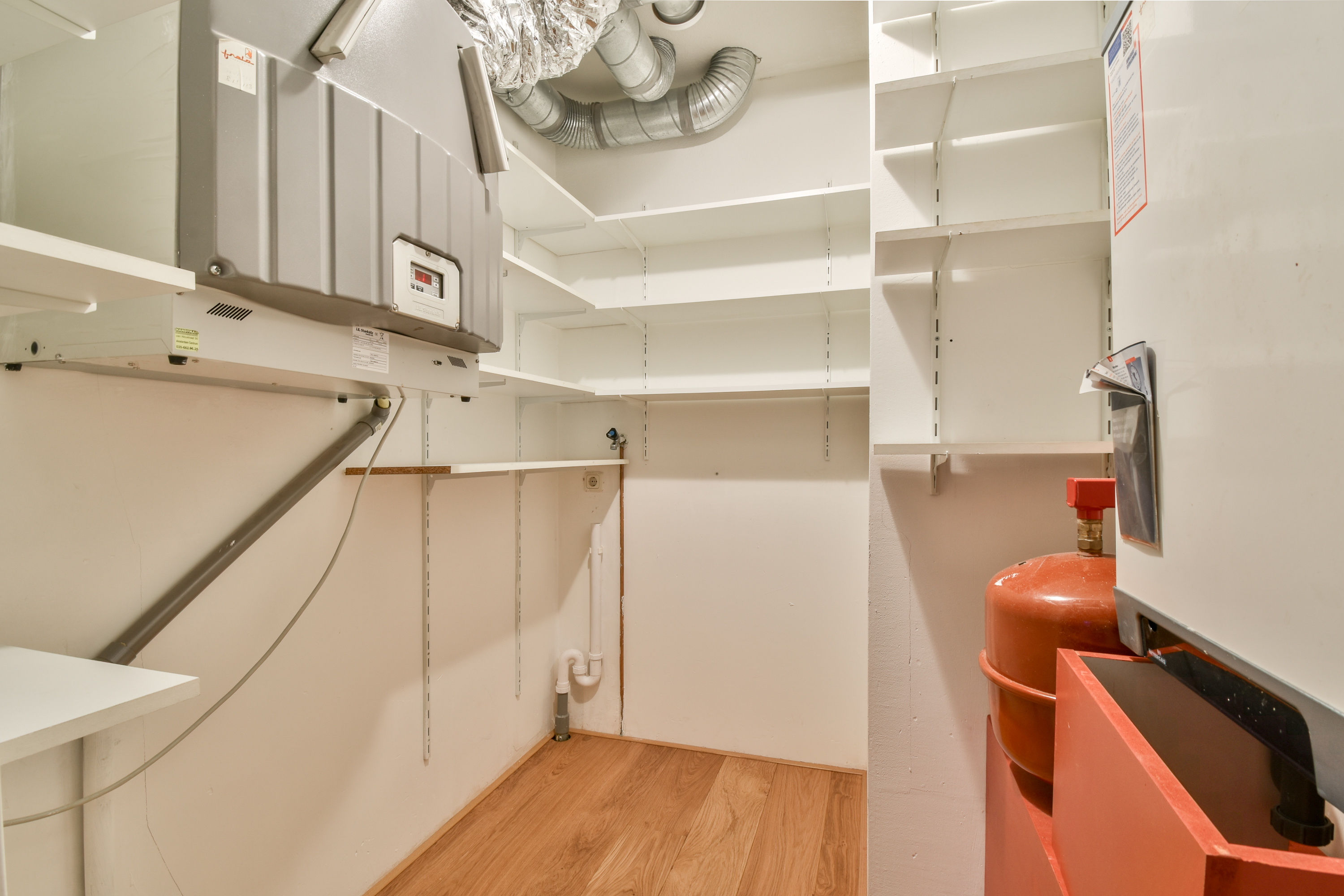 - Aansluitend aan de keuken bevindt zich de ruime inpandige berging waar de cv-ketel, balansventilatie unit en wasmachineaansluiting zijn geplaatst.