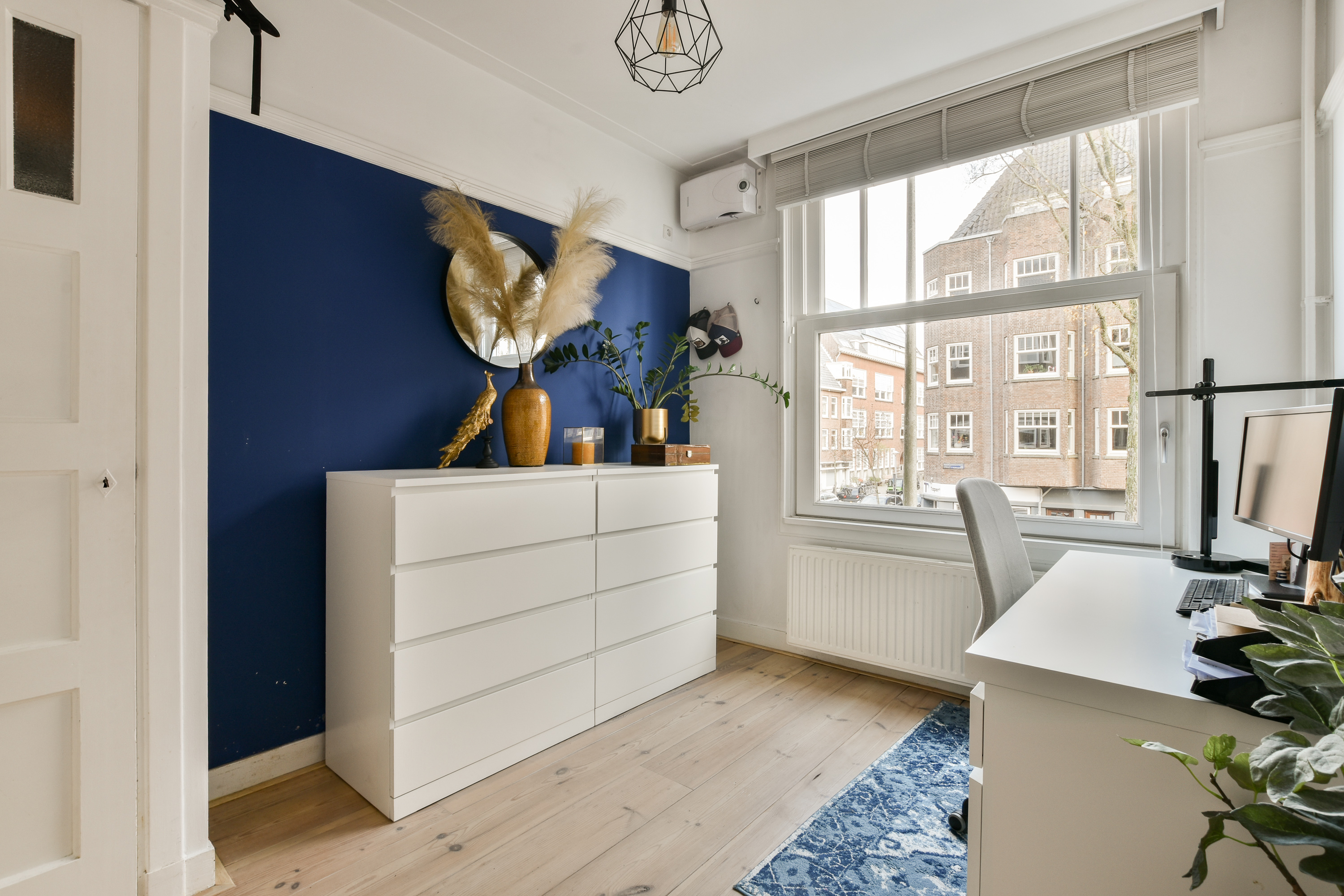 - De tweede slaapkamer bevindt zich aan de voorzijde en is tevens geschikt als werk- of kinderkamer.