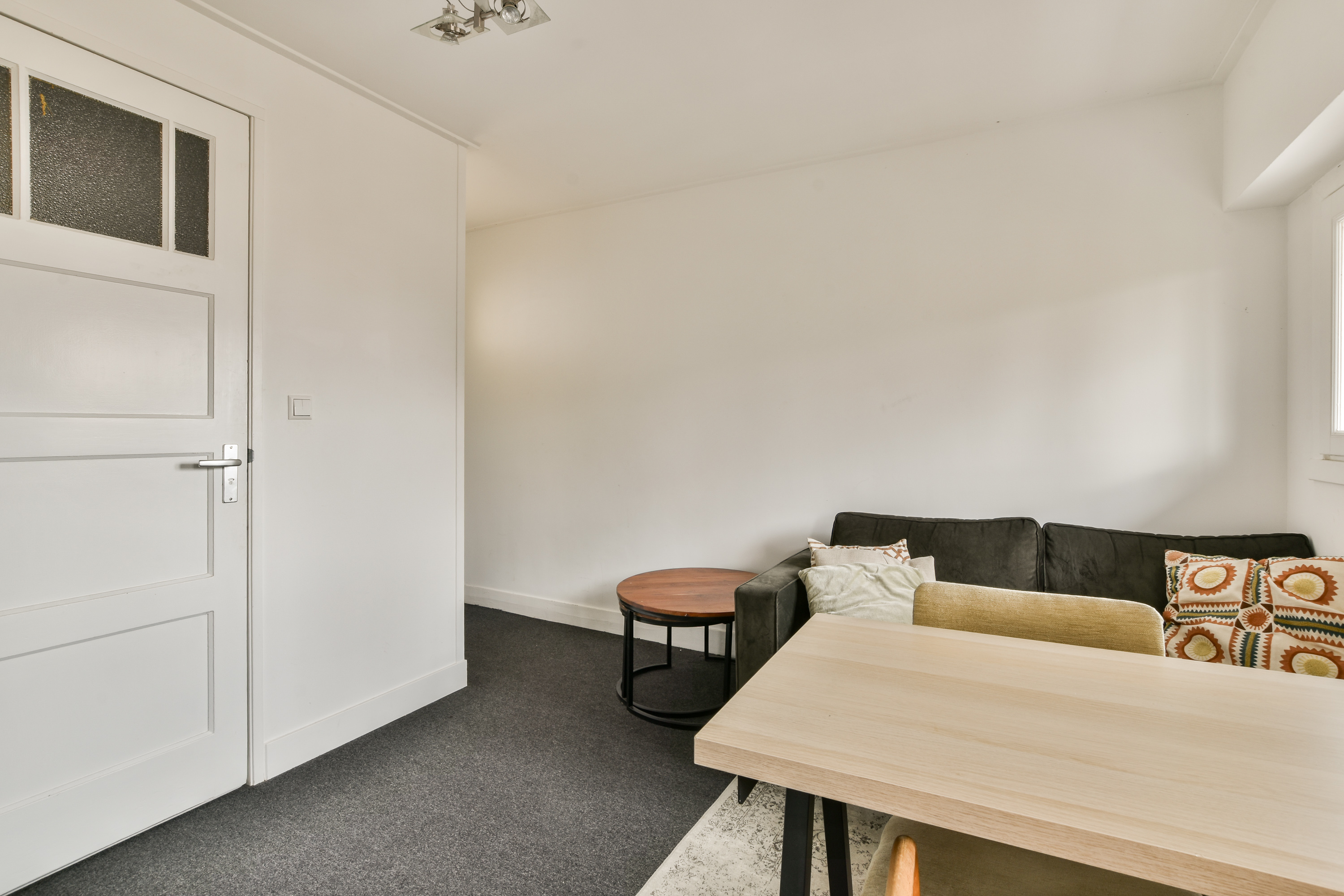 - Via een karakteristieke deur met glas-in-lood is de ruime en lichte woonkamer bereikbaar;