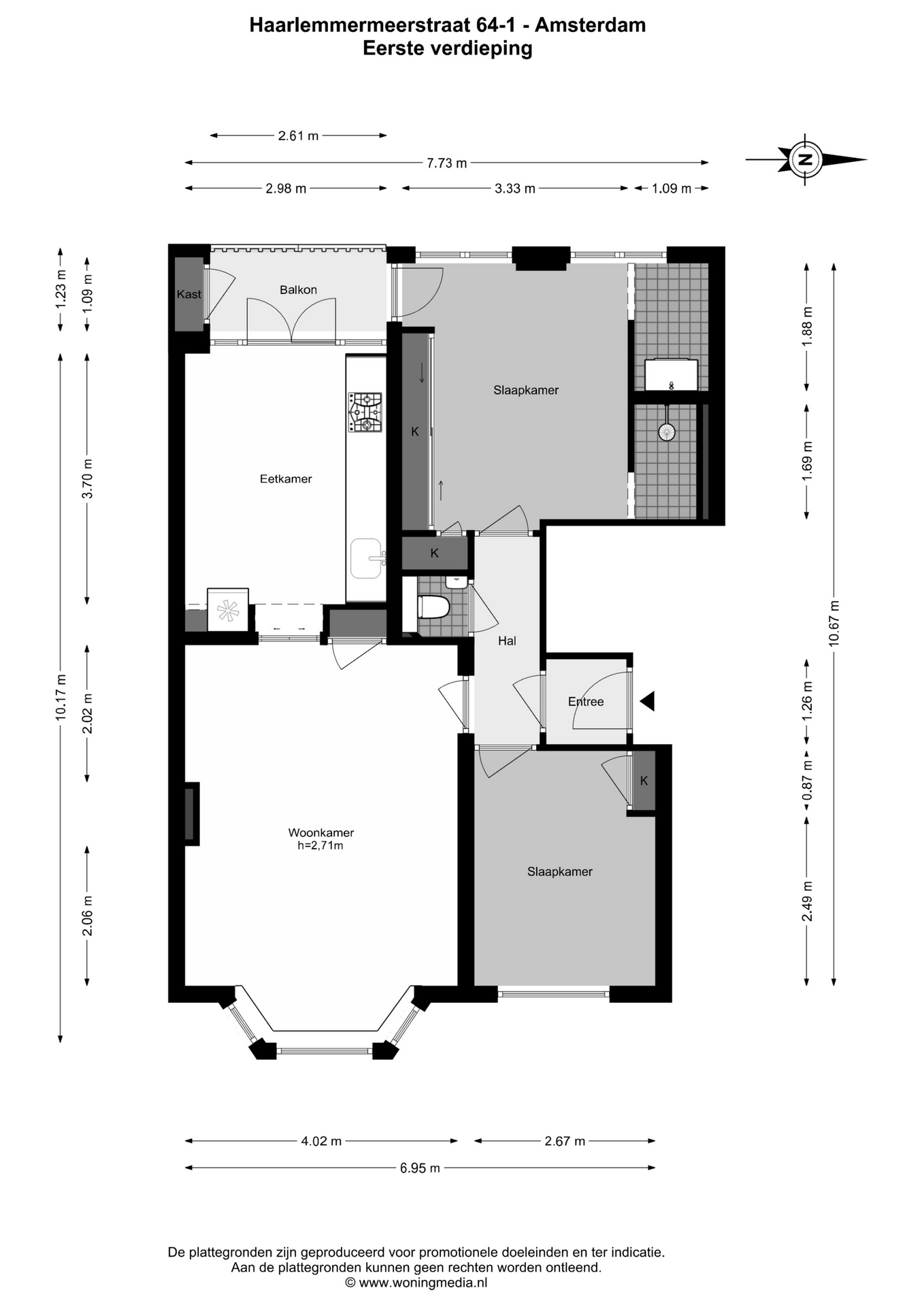 - De woonoppervlakte bedraagt 70,70 m²;