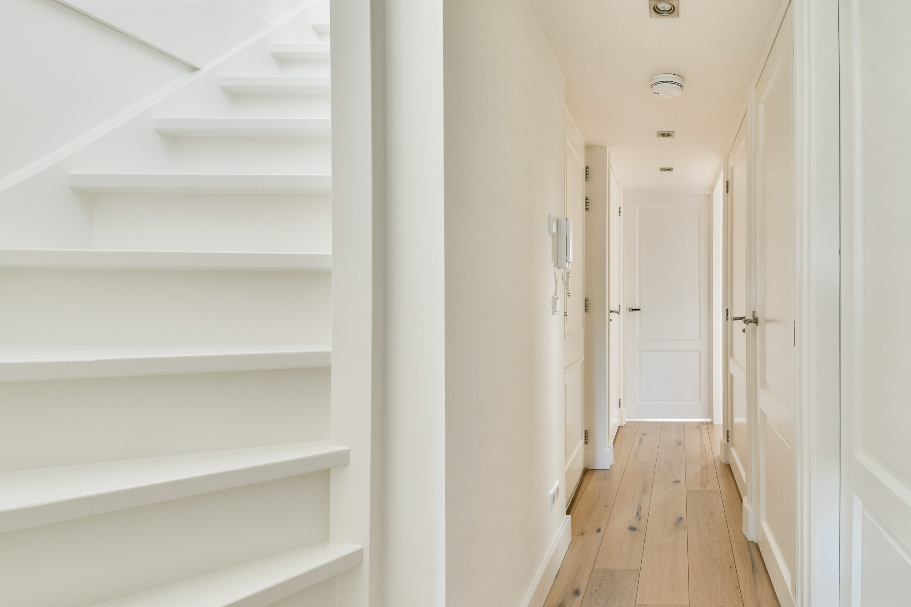 - Binnenkomst in de hal met toegang tot alle slaapvertrekken, de trap naar de woonkeuken, het