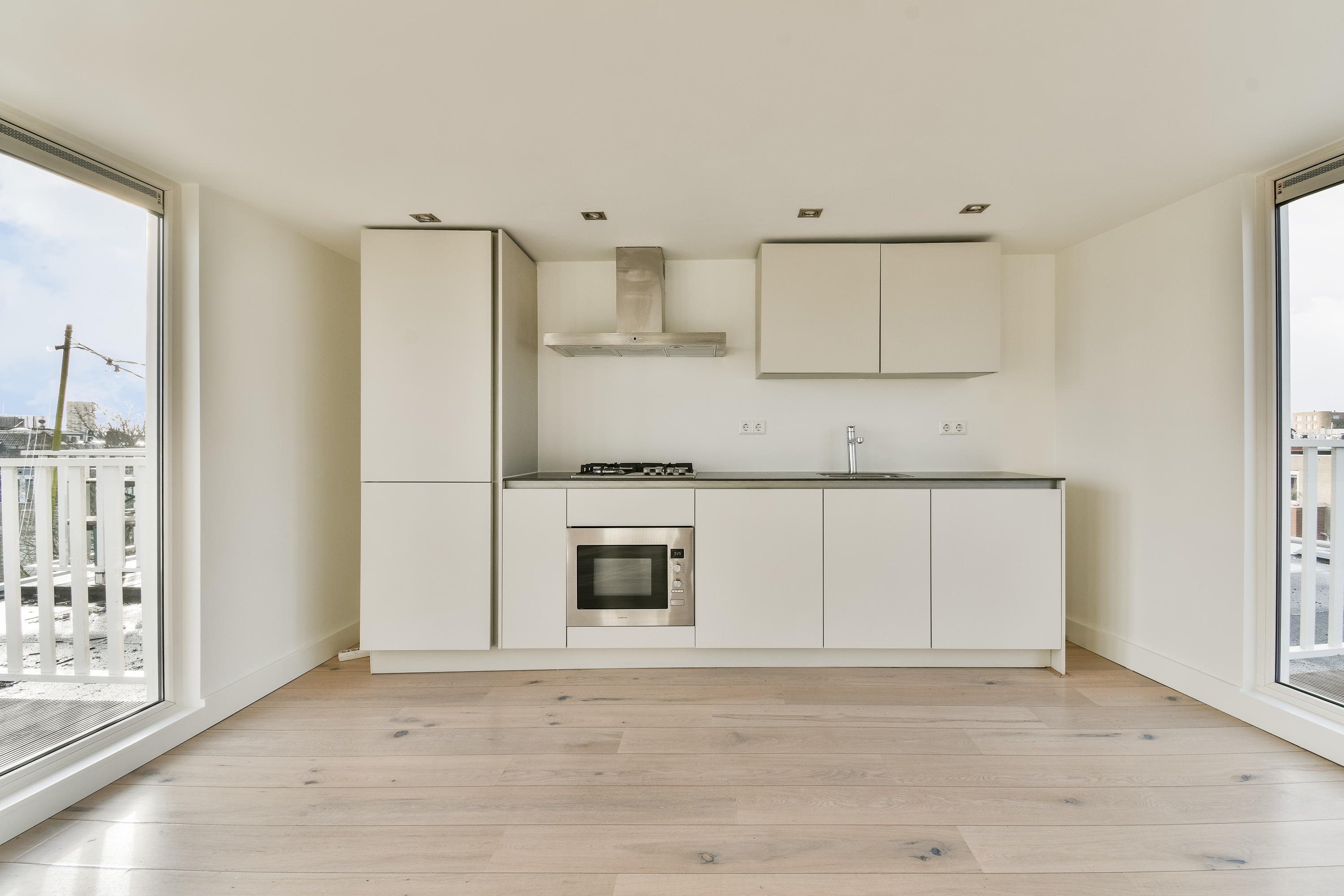 - De woning beschikt over een lichte woonkeuken dankzij de openslaande deuren aan beide