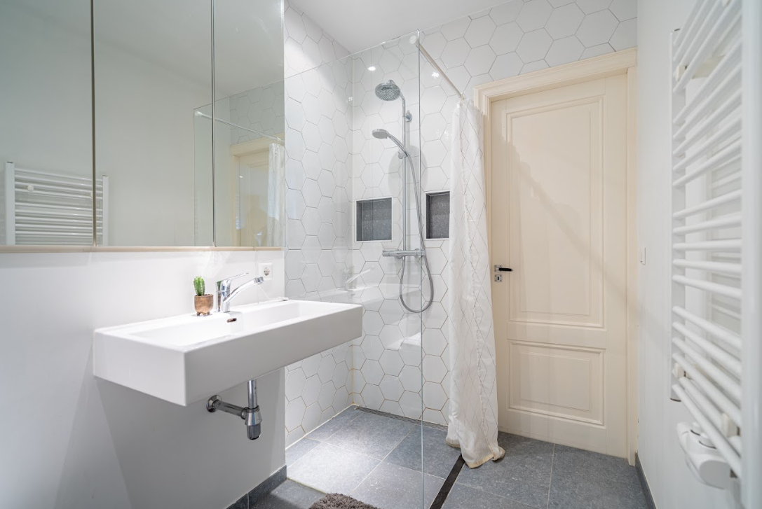 - De badkamer ligt centraal in de woning en is voorzien van