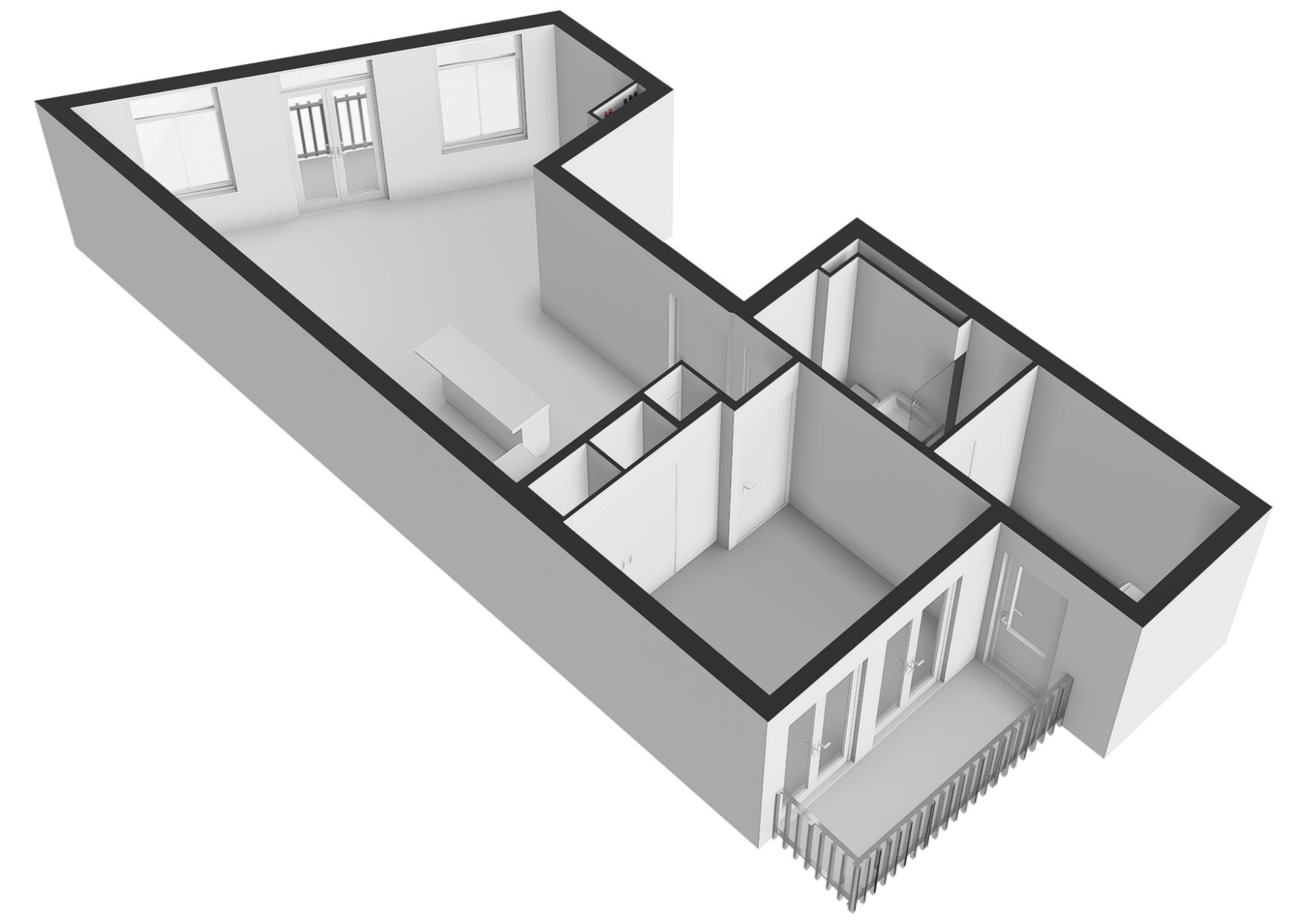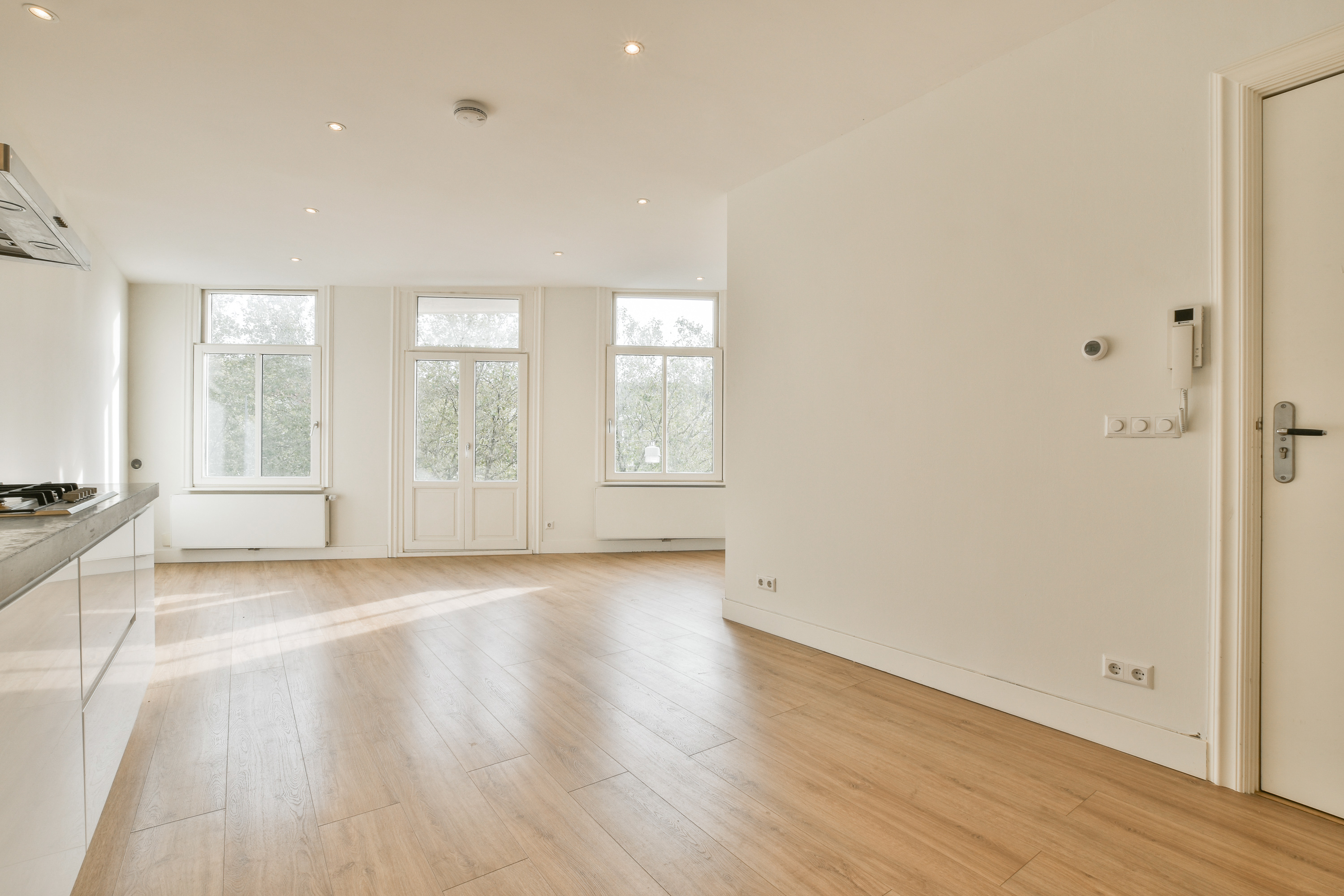 - De drie grote ramen met openslaande deuren naar het balkon zorgen voor een zee aan licht en
