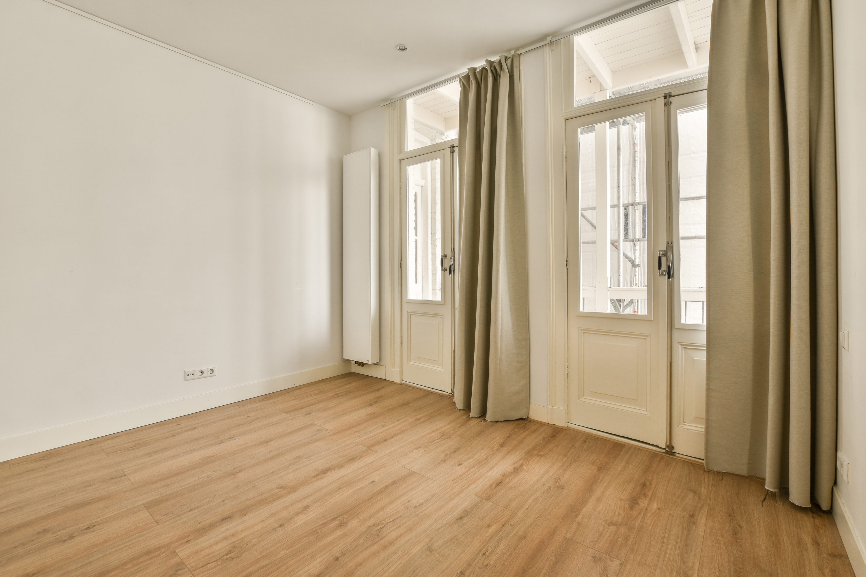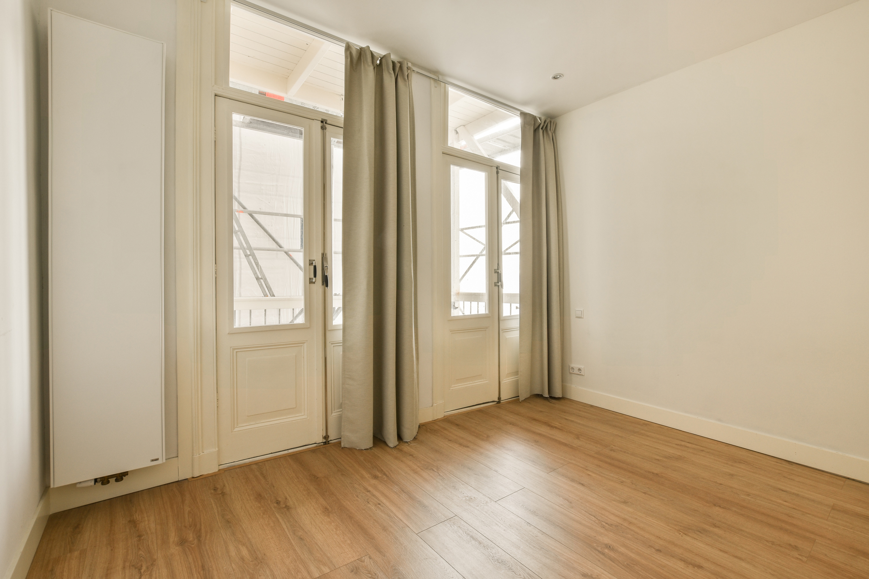 - Kortom: een lichte, zonnige en sfeervolle leefruimte met openslaande deuren naar het balkon.