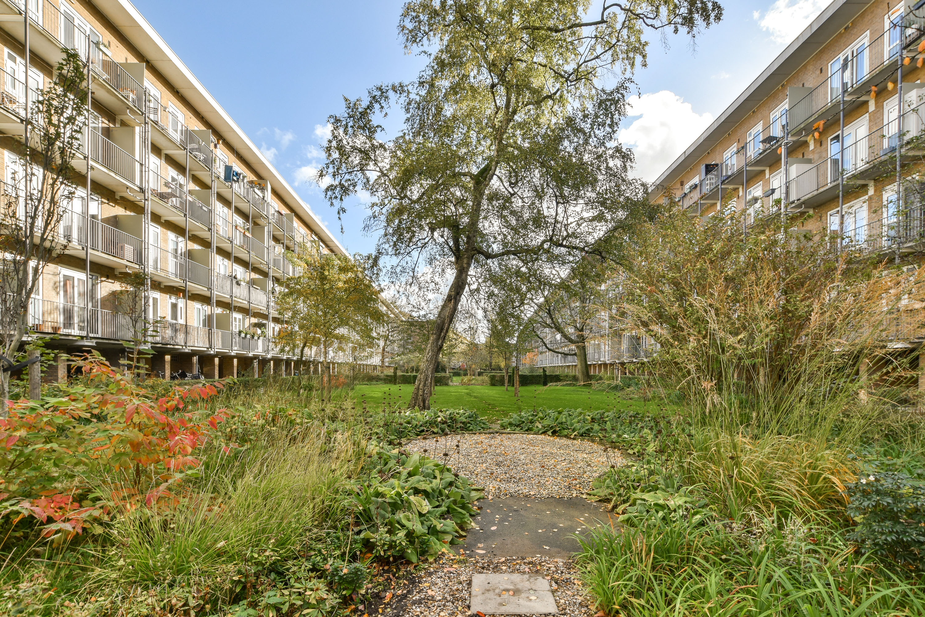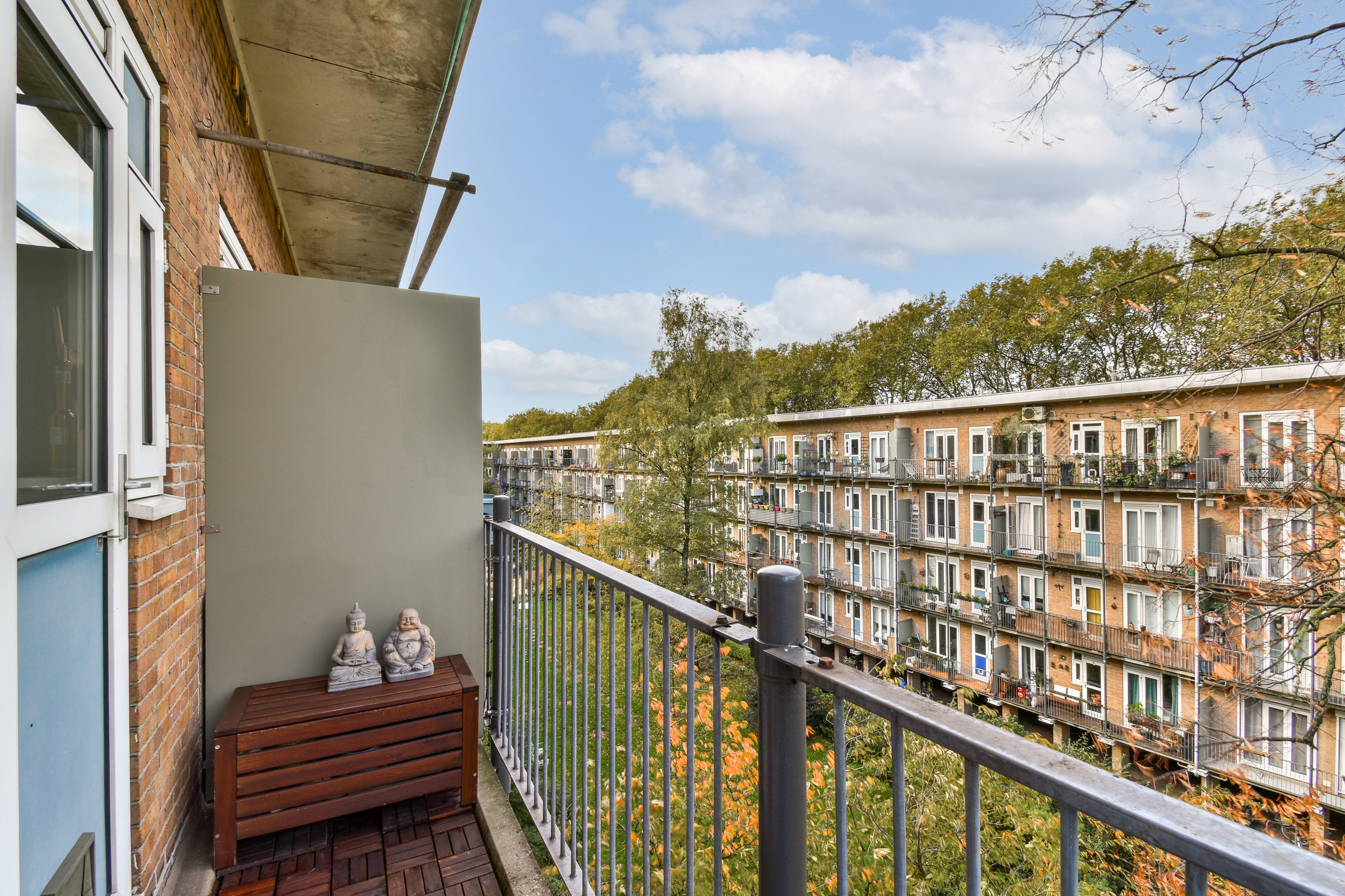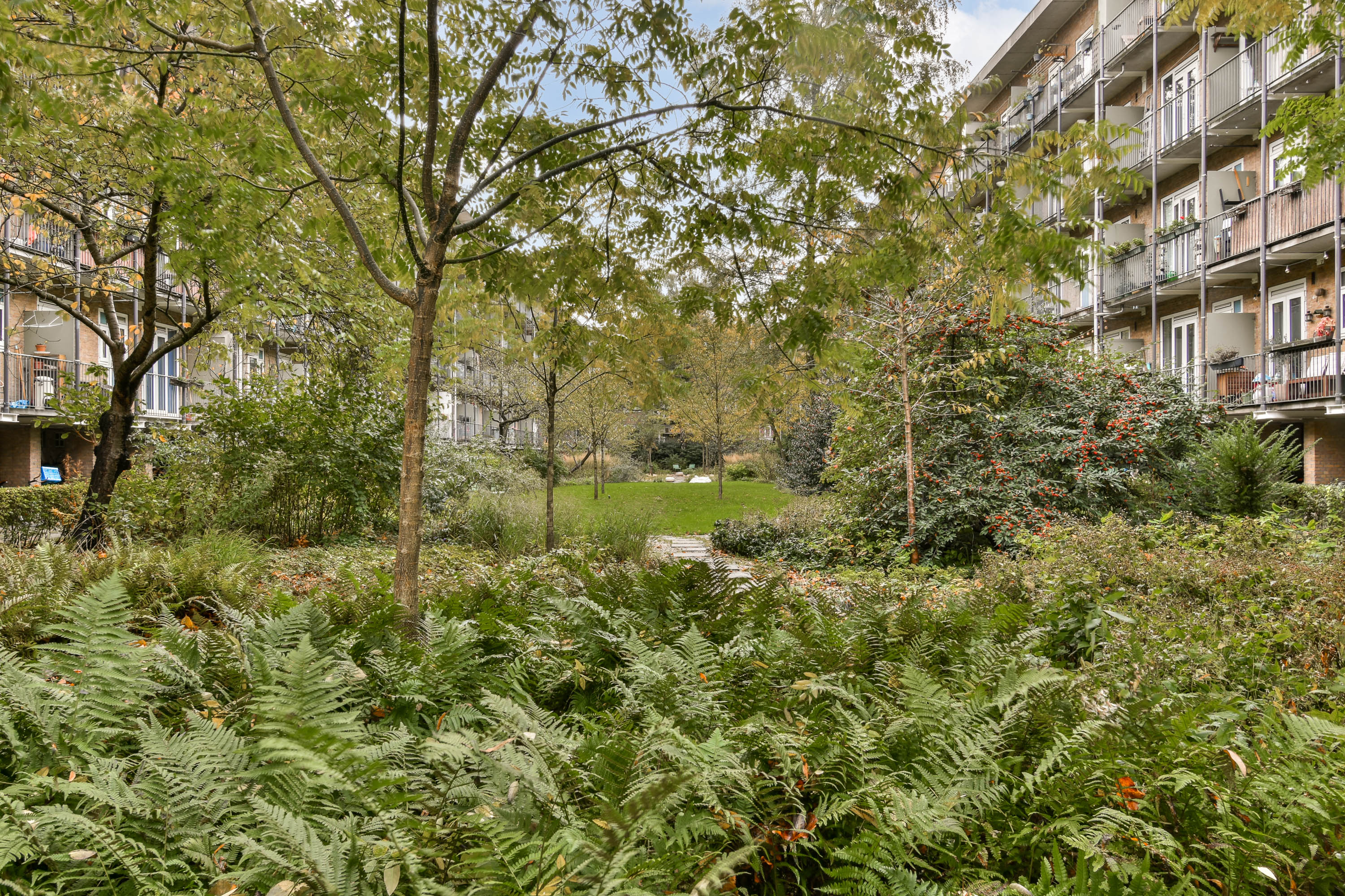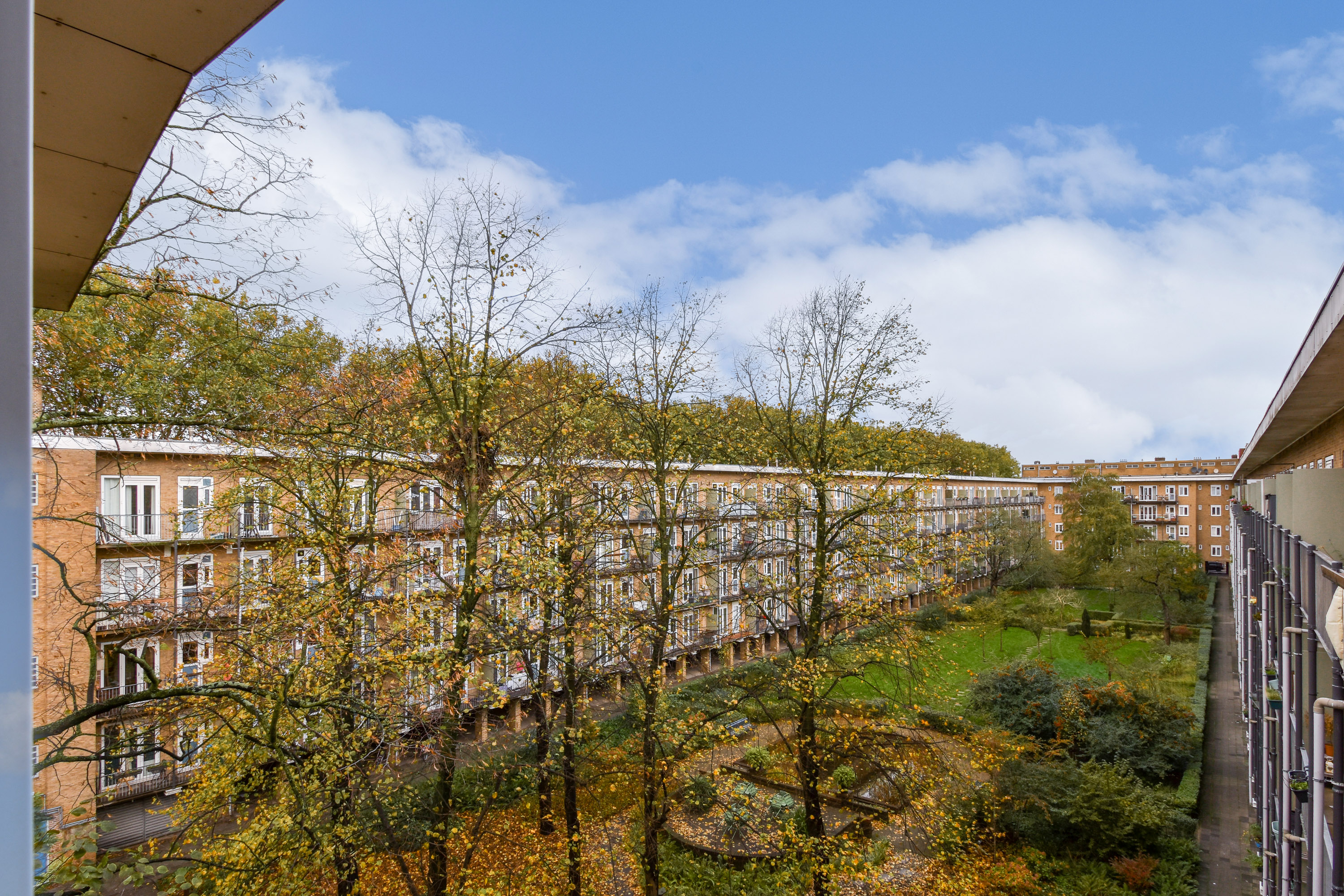 YES! Light, modern, and practically laid out 3-room CORNER apartment on the top floor with a sunny west-facing balcony, storage room in the basement, and a beautiful communal enclosed courtyard garden designed by Mien Ruys, one of the most important landscape architects of the 20th century. The property is part of the popular Geuzenhof 1 complex, on the border of the Baarsjes and Oud-West neighborhoods, a short distance from the Jordaan.
